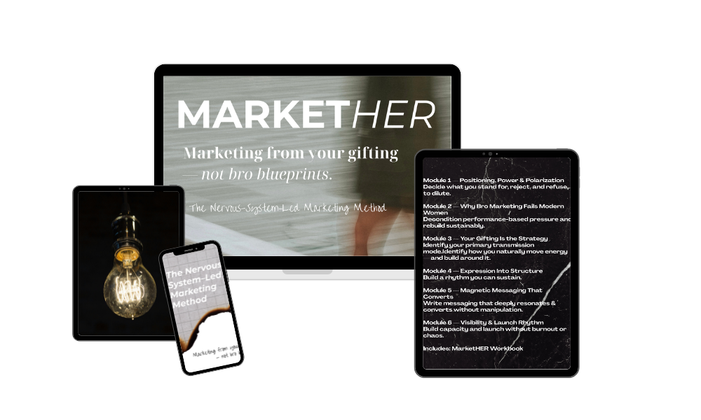 You’re tired of pretending, people-pleasing, and looping in burnout—and ready to market in a way that mirrors your biology, not your trauma.